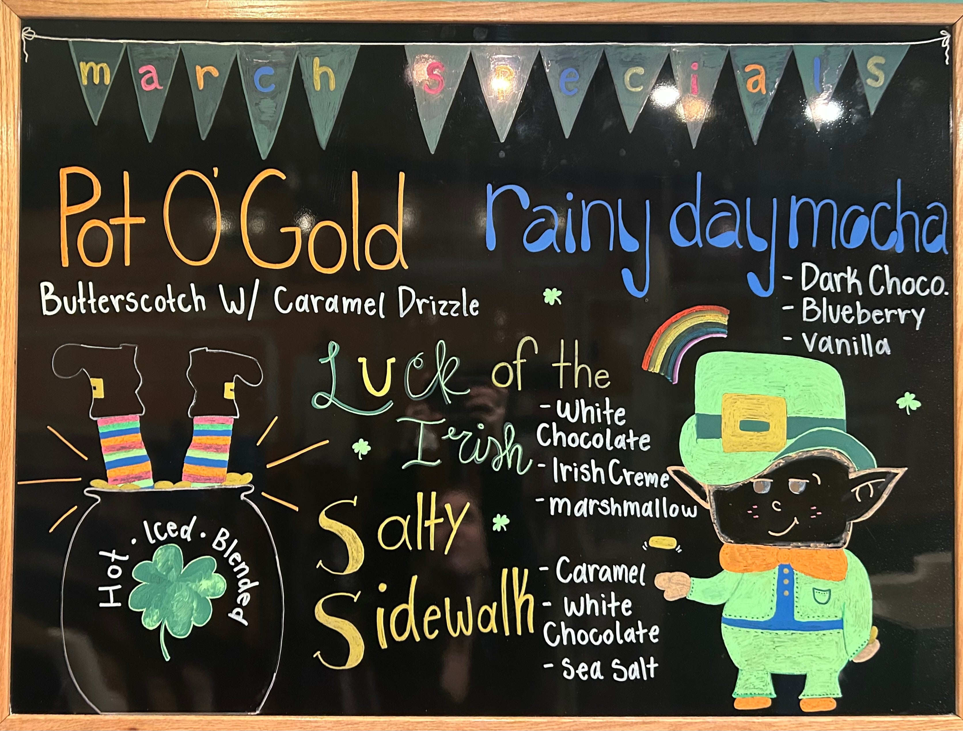• Lucky Monkey Mocha – white chocolate & creme de menthe